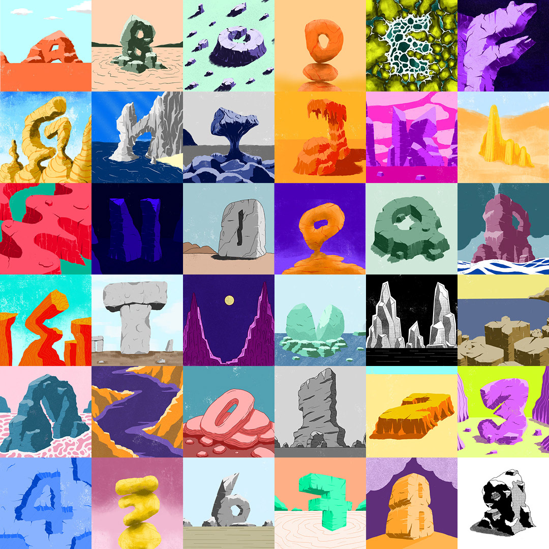 36 Days of Type 2021 - the submissions for the illustrated type collection were based on rock formations.